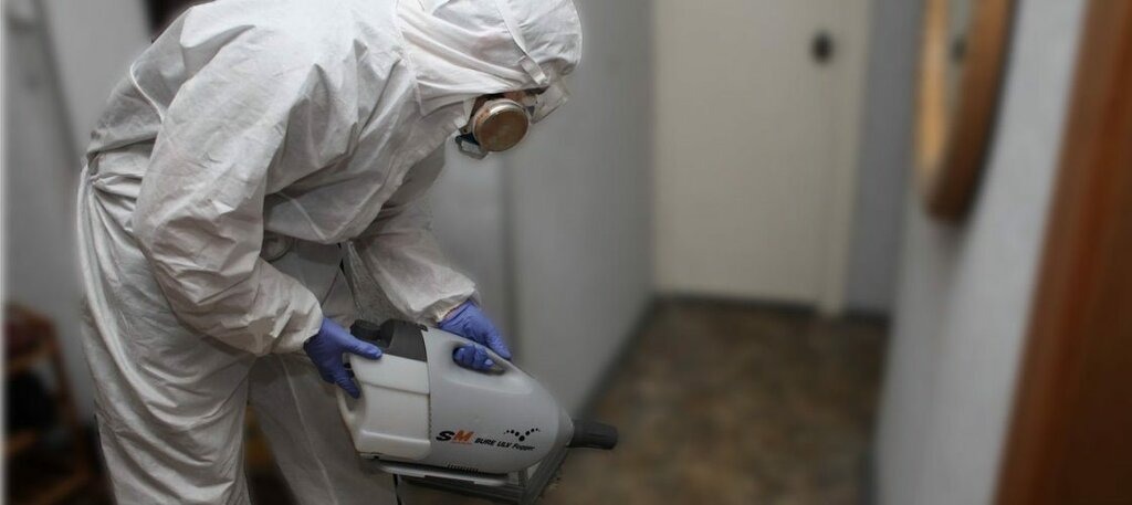 специалист проводит дезинсекцию современными средствами